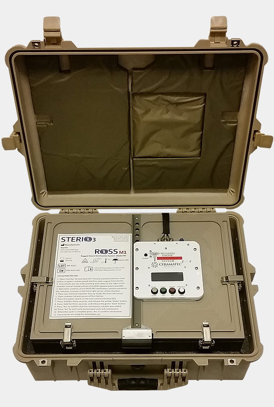 SteriO3 is the manufacturer of the Rugged Ozone Sterilization System M1 (ROSS M1).